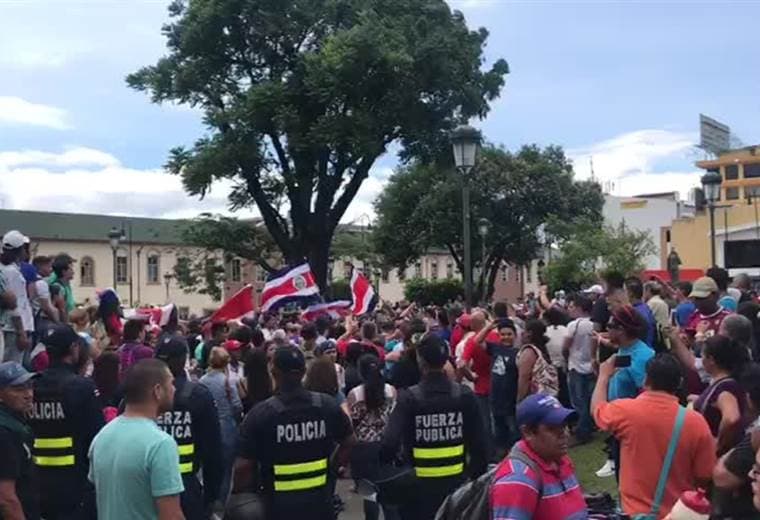 Un numeroso grupo de personas acudió al parque La Merced para protestar por la presencia de nicaragüenses en el lugar.