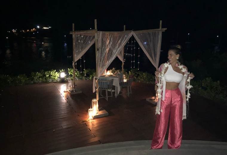 Ella y su novio, el reconocido piloto André Solano, tuvieron su romántico momento en un mirador durante el atardecer, seguido de una cena muy especial