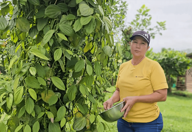 Sus primeros cultivos fueron piña; años después cacao, y hace unos seis años pimienta, que no comercializa, sino que comparte con sus clientes, familiares y amigos.