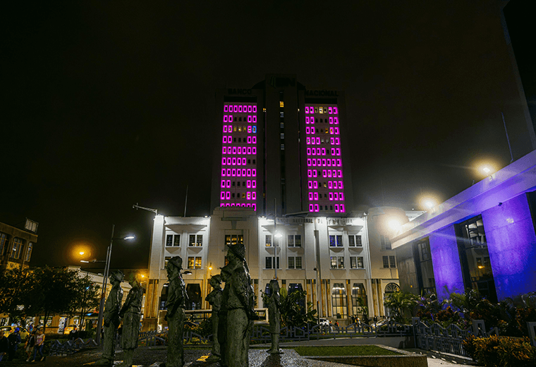 En octubre, el edificio del Banco Nacional se ilumina de rosa, sumándose a la campaña mundial de lucha contra el cáncer de mama. Con este gesto, la institución busca recordar la importancia del autoexamen, una práctica sencilla que puede salvar vidas al permitir detectar a tiempo cualquier cambio.