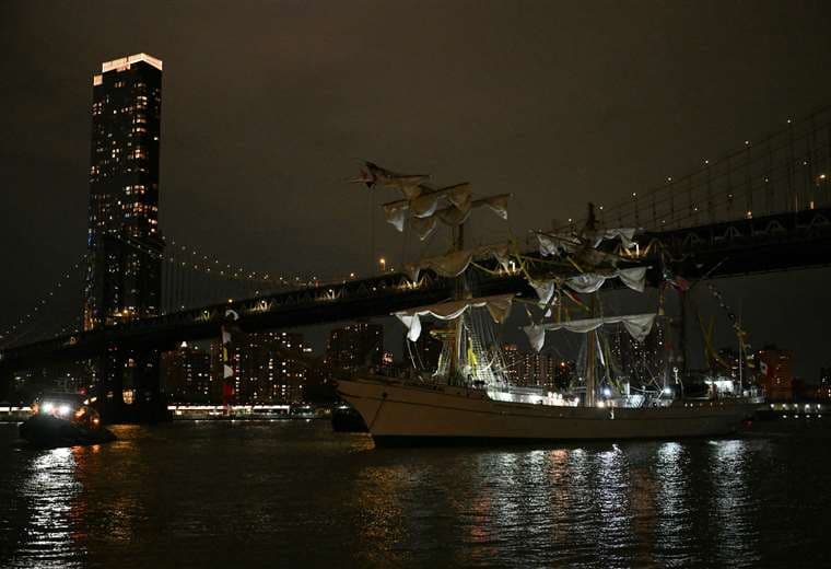 Estaba atracado en medio de fuentes medidas de seguridad en un muelle cercano al puente de Manhattan, no muy lejos del de Brooklyn, a donde se desplazó el embajador de México en Estados Unidos el domingo por la mañana, según observó una periodista de la AFP.