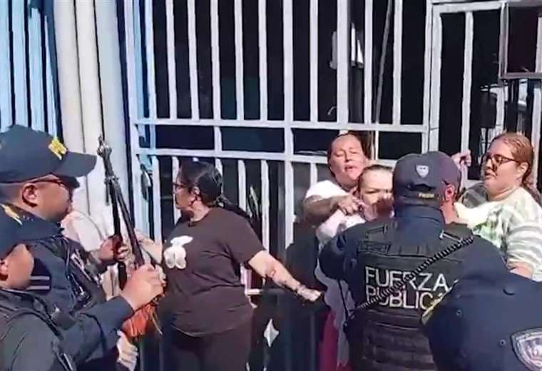 Durante el intento de apertura de los portones por parte de los oficiales, se dio un forcejeo con algunos de los manifestantes, entre ellos adultos mayores y madres acompañadas por menores de edad. Los presentes denunciaron maltrato físico y verbal por parte de los uniformados.