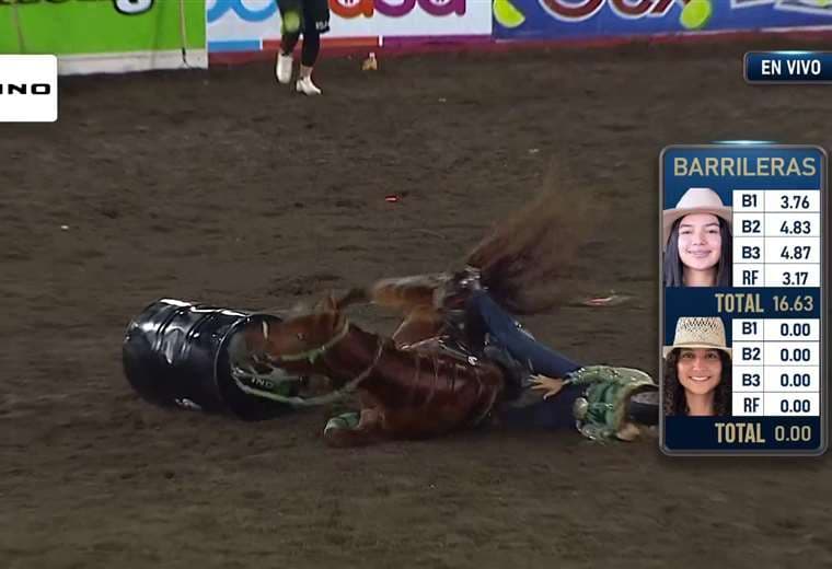 La caída de Porras es el único incidente reportado hasta el momento, pero el evento continúa con la participación de otras vaqueras, quienes siguen dando lo mejor de sí en esta exigente prueba ecuestre.