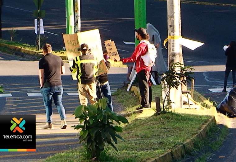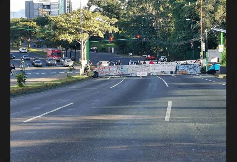 La Fuerza Pública negocia con el grupo de manifestantes que tienen bloqueada de forma parcial la vía frente a la Facultad de Derecho de la Universidad de Costa Rica (UCR), en San Pedro.