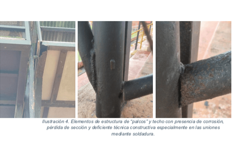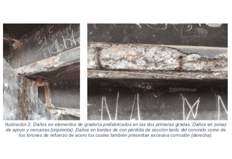 “Los sectores este y oeste se identificaron fisuras en las vigas de la gradería sobre las vigas-columna inclinadas.