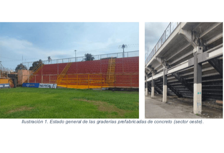 Además, Salud identificó “grietas en varias columnas externas que soportan la gradería norte, así como fisuras en las vigas-columna asociadas de la misma estructura”.