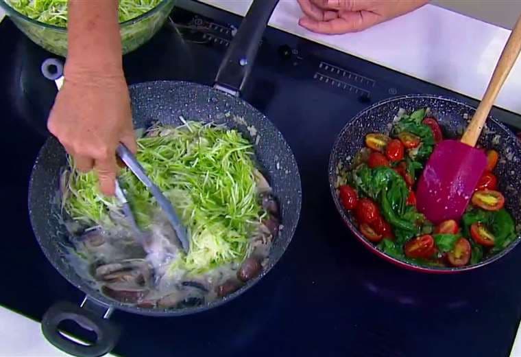 La chef Doris Goldgewicht regresa a la cocina de Buen Día con una pasta fresca hecha de zucchini, ideal para quienes buscan una forma original y saludable de consumir este versátil vegetal. En esta ocasión, propone acompañarlo con dos salsas distintas: una cremosa con pollo y hongos, y otra a base de tomates cherry y espinaca.