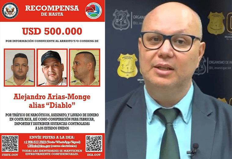 La Administración para el Control de Drogas de Estados Unidos (DEA, por sus siglas en inglés) anunció una recompensa de hasta $500.000 por información que conduzca a la captura de Arias Monge, considerado el narcotraficante más buscado de Costa Rica.