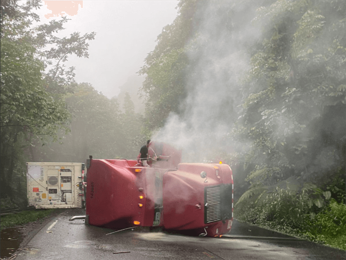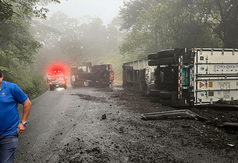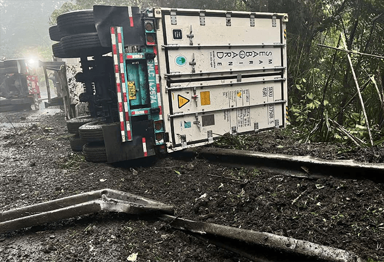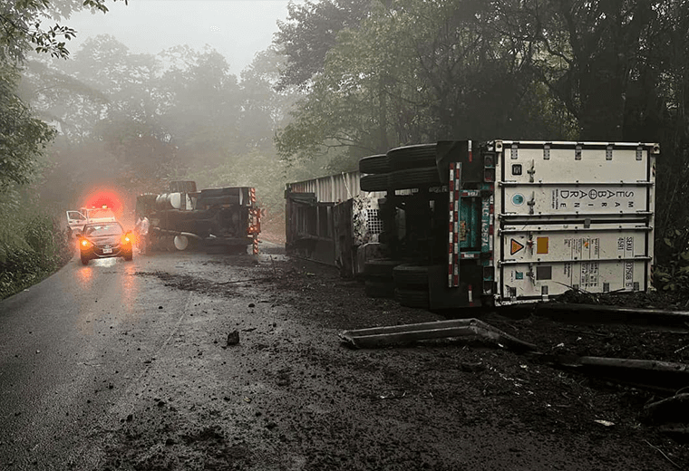 Tráiler vuelca y obliga a cerrar paso por Ruta 32