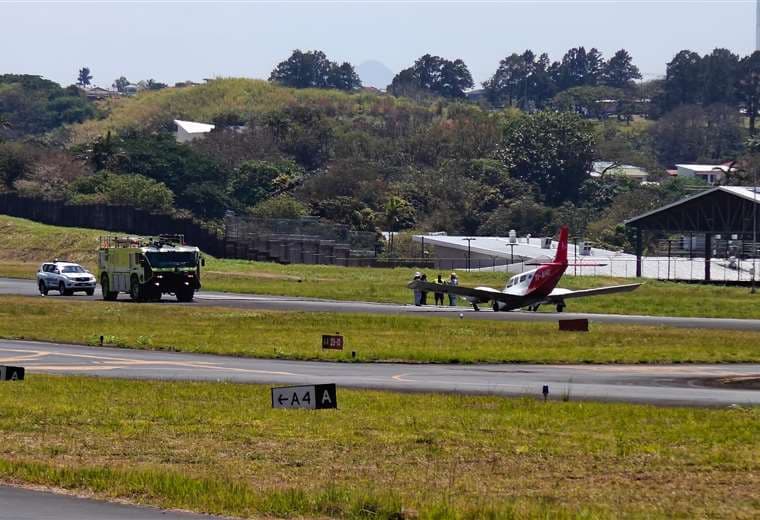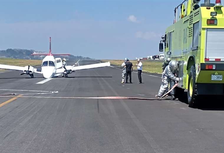 Una avioneta puso a correr a los cuerpos de emergencia en el Aeropuerto Tobías Bolaños, tras sufrir problemas en el tren de aterrizaje.