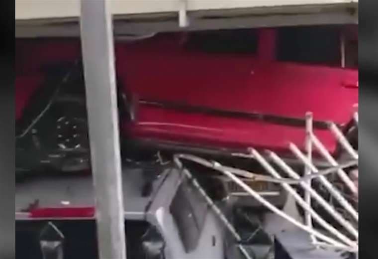Tal como se muestra en el video adjunto de Telenoticias, grabado por un vecino, el impacto fue tan fuerte que el automóvil liviano de color rojo derribó el portón de la vivienda y quedó sobre otro vehículo que estaba estacionado en la cochera.