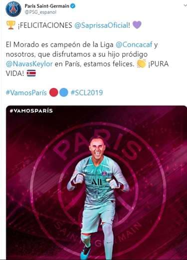 La cuenta oficial del Deportivo Saprissa le respondió el saludo: "Pura vida PSG, abrazo hasta París".