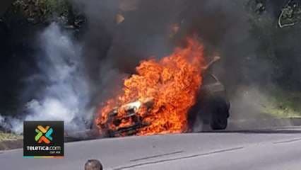 Un voraz incendio consumió por completo un vehículo en Tarbaca de Aserrí en San José la mañana de este lunes.
