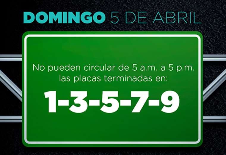 Por su parte, las placas que finalicen en 0, 2 ,4, 6 y 8 sí pueden transitar, pero solo a partir de las 5 a.m. y hasta las 5 p.m.