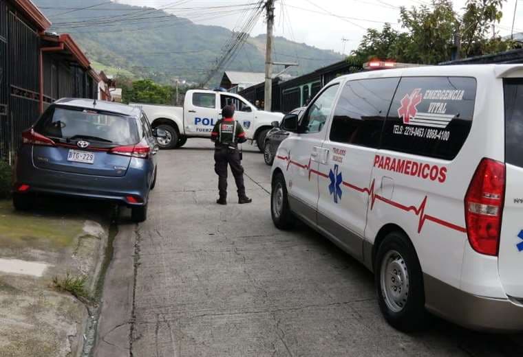 Oficiales de la Fuerza Pública se encuentran en la zona, custodian la escena a la espera de los agentes del Organismo de Investigación Judicial (OIJ) para el levantamiento del cuerpo.