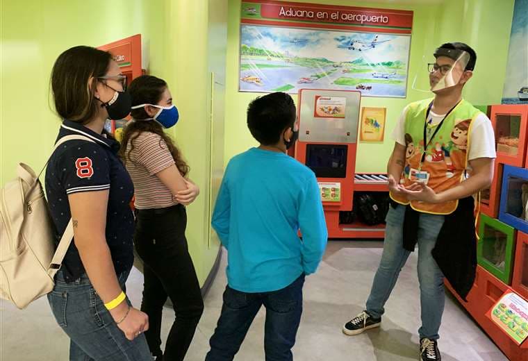 A cada familia o burbuja social se le asigna un guía que los lleva por todo el recorrido de salas interactivas.