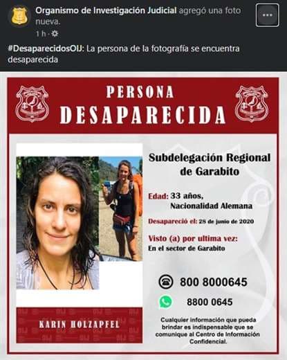 OIJ busca a joven alemana desaparecida en Garabito