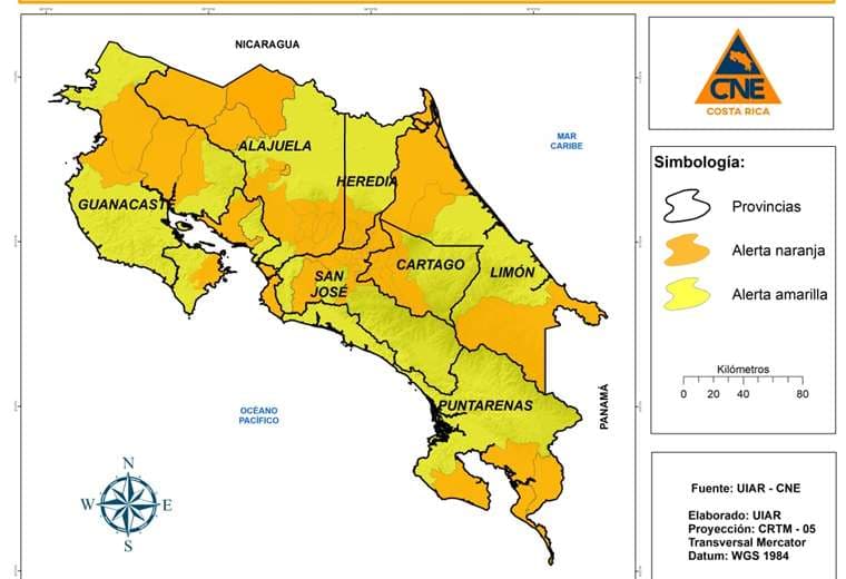 Conozca la lista completa de cantones en alerta naranja