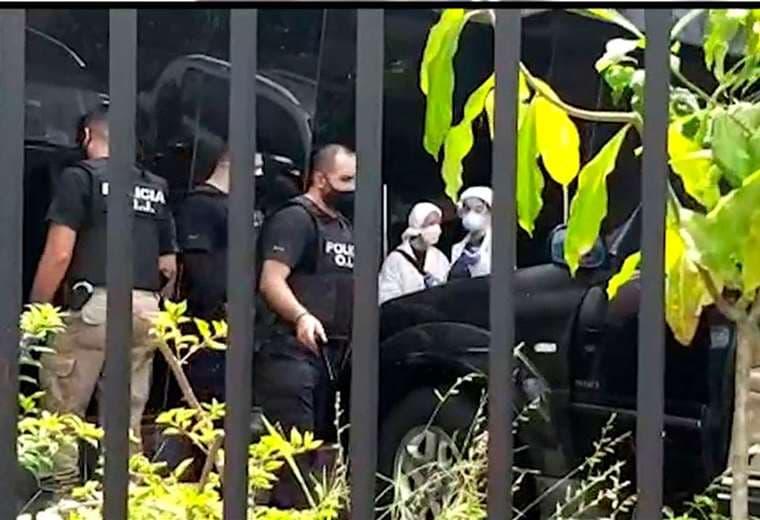 Autoridades del Organismo de Investigación Judicial (OIJ) y de la Fiscalía de Quepos y Parrita dirigen un allanamiento, la mañana de este miércoles, en la casa donde viven los dueños del hotel donde fue encontrada sin vida la anestesióloga María Cedeño.