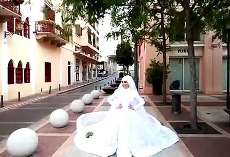 Una novia posaba para sus fotos de boda cuando ocurrieron las explosiones en el puerto de Beirut, Líbano.