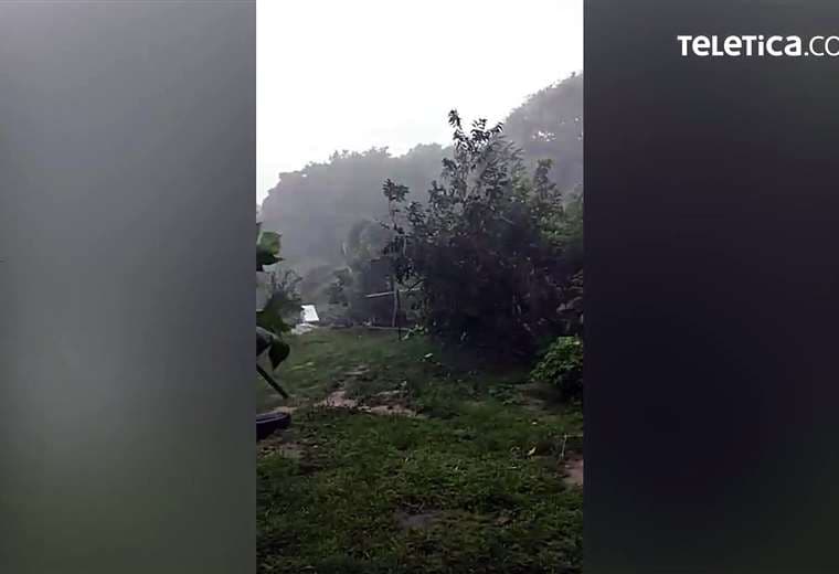 En la comunidad de Santa Marta de Batán en Limón, los fuertes vientos provocaron la caída de un árbol sobre un poste, lo que ocasionó un corto circuito en el tendido eléctrico.