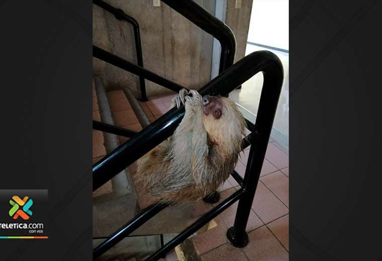 Un perezoso visitó, este jueves, las instalaciones de la Escuela de Administración de la Universidad de Costa Rica (UCR).