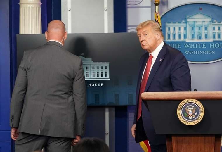Trump reapareció poco después en la sala de prensa, donde los periodistas habían quedado confinados, y anunció que alguien había recibido un disparo afuera de la Casa Blanca.