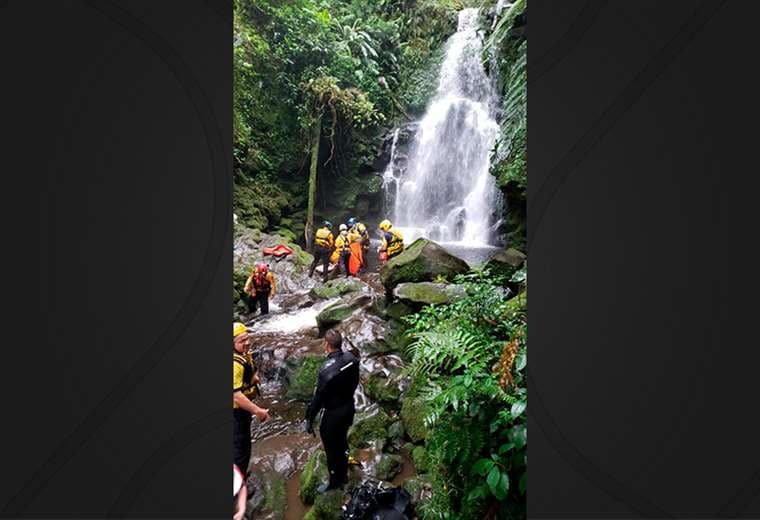 Según reportes preliminares, una mujer que también estaba en la poza logró salir, pero la otra persona fue arrastrada hacia la catarata.