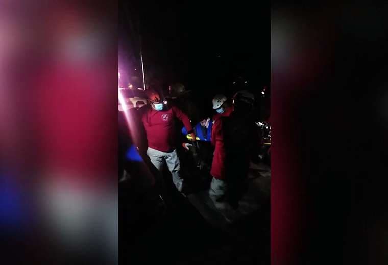 Unidades de emergencia rescataron, la noche de este domingo, a una mujer que cayó a un guindo en Tarrazú.