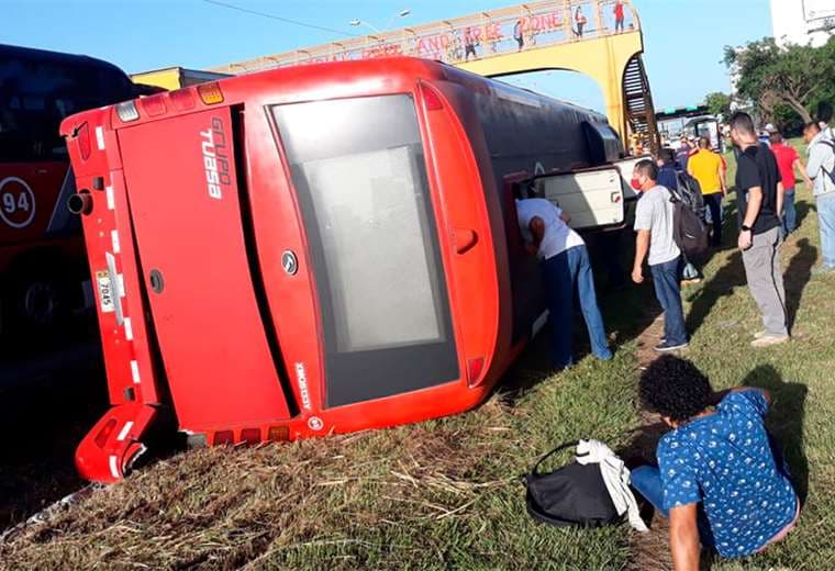 El vuelco de un autobús la mañana de este lunes dejó al menos cuatro personas con heridas leves en Río Segundo de Alajuela.