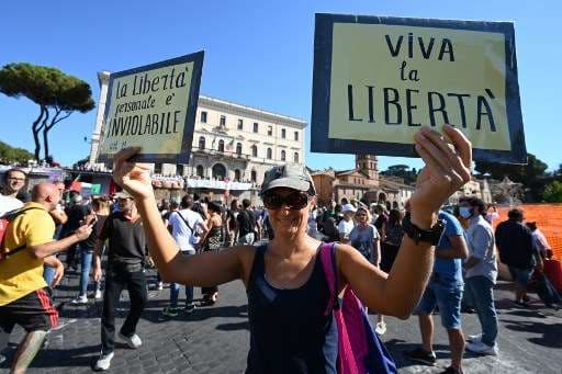 Mil personas se manifiestan en Roma contra mascarillas y vacunas