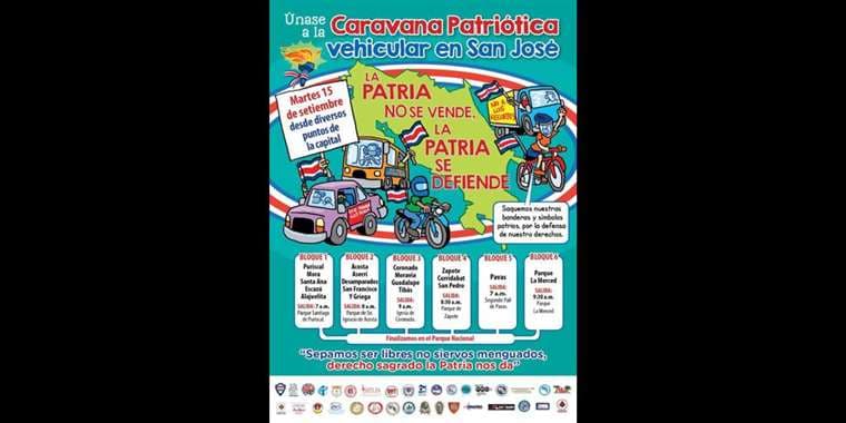 El sector sindical participa, este martes 15 de setiembre, en caravanas patrióticas bajo el lema "Costa Rica no se vende, Costa Rica se defiende".