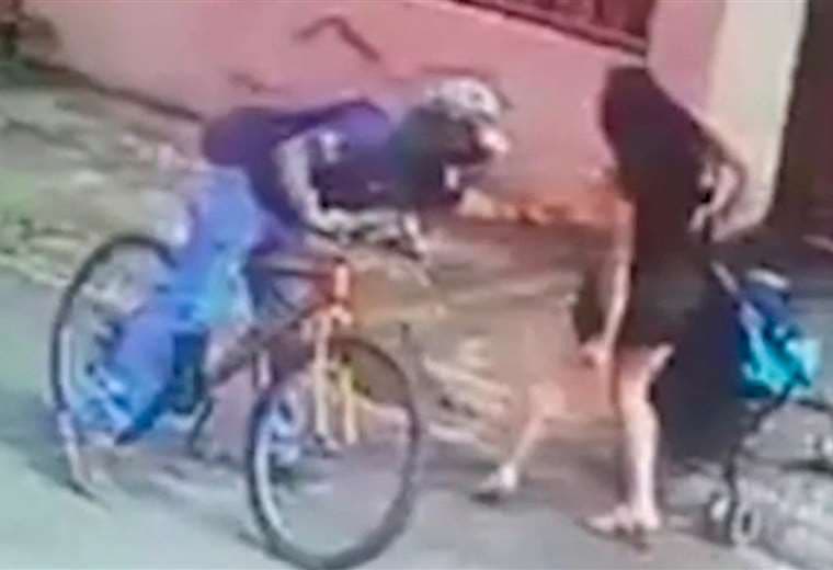 Al momento de los hechos, el sospechoso viajaba en una bicicleta. Una cámara de seguridad grabó lo ocurrido a eso de las 9 de la mañana de este miércoles, frente al Colegio Miravalles.