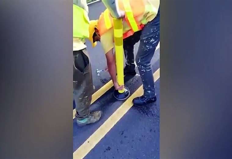 Como se observa en el video adjunto, los huecos en el asfalto ya están listos, por lo que este domingo se colocará la totalidad de los 2.400 postes.