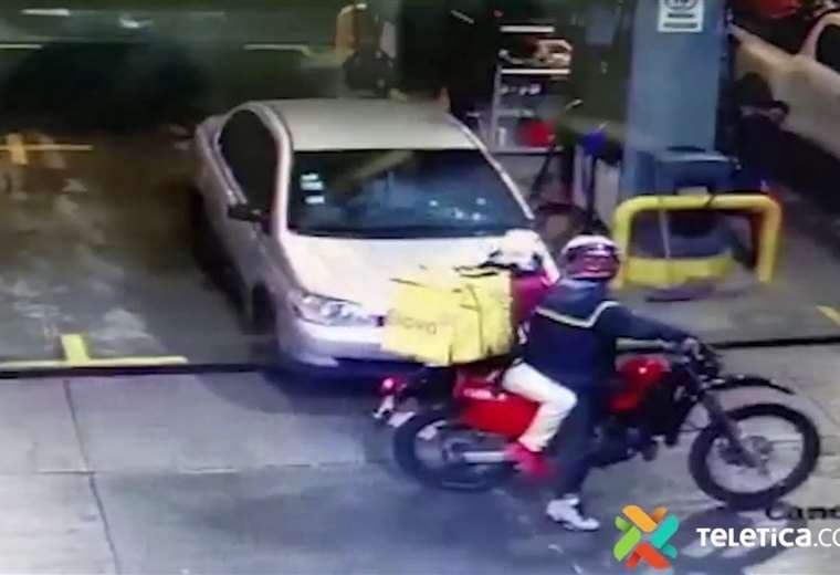 El sujeto que va detrás de la moto con camiseta de Saprissa le propina ocho impactos de bala, luego se baja para dispararle dos veces más.
