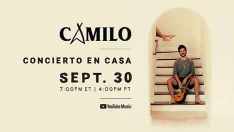 Se transmitirá por el canal de YouTube de Camilo, desde la intimidad de su hogar. “Concierto en casa” se efectuará para celebrar el lanzamiento de su nueva canción y video ‘Vida de rico’.