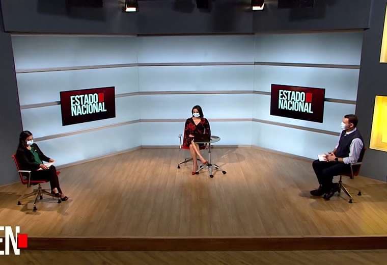 Lilliana Carranza, directora de Estado Nacional, conversa con los economistas Dennis Meléndez y Daniel Suchar, así como con Roxana Morales, vicerrectora de Administración de la UNA y Enrique Sánchez, jefe de fracción del PAC.