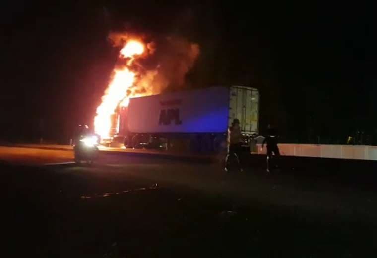 Aparentemente varios sujetos le tiraron una bomba molotov al camión y este prendió en llamas frente al predio de Celdeca.