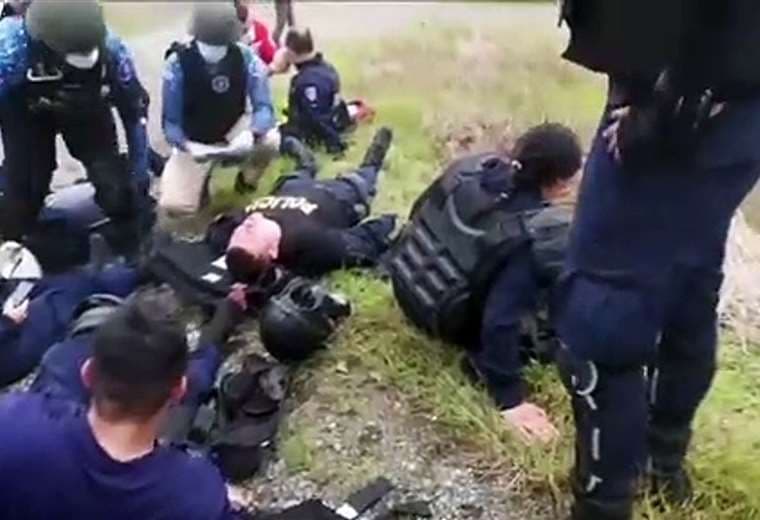 Al parecer, varios oficiales sufrieron fracturas en sus extremidades y cortaduras.