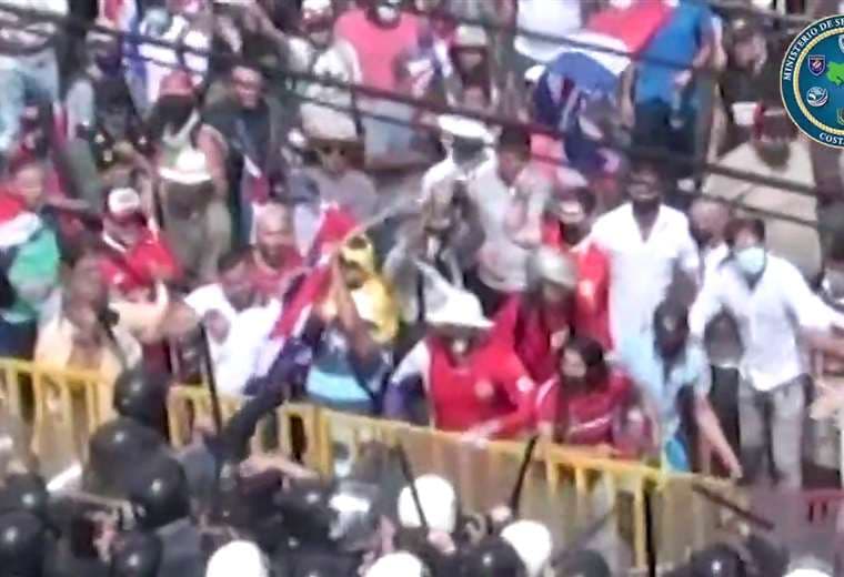 Un oficial de la Fuerza Pública resultó herido en la manifestación que se realiza frente a la Casa Presidencial, en Zapote.