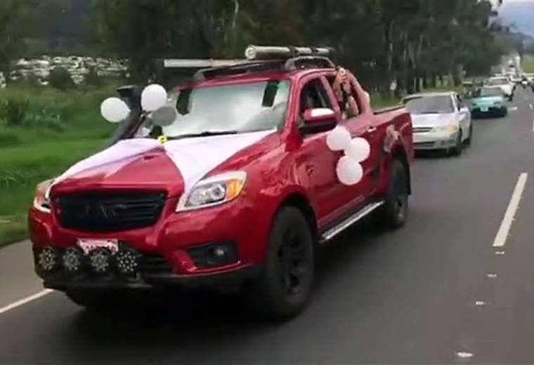 Desde ese sector, detrás del vehículo de la funeraria se formó una larga fila de carros que llevaban globos y lazos de color blanco.