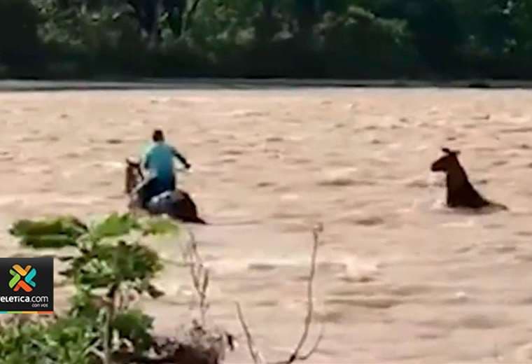 Dos hombres arriesgaron sus vidas para salvar una vaca y un caballo tras las crecida de ríos.