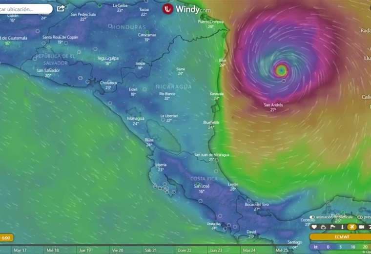 "Se esperan vientos extremadamente peligrosos y marejada ciclónica amenazante a la vida a lo largo de la costa noreste de Nicaragua y este de Honduras", dijo este lunes el NHC en su último boletín.