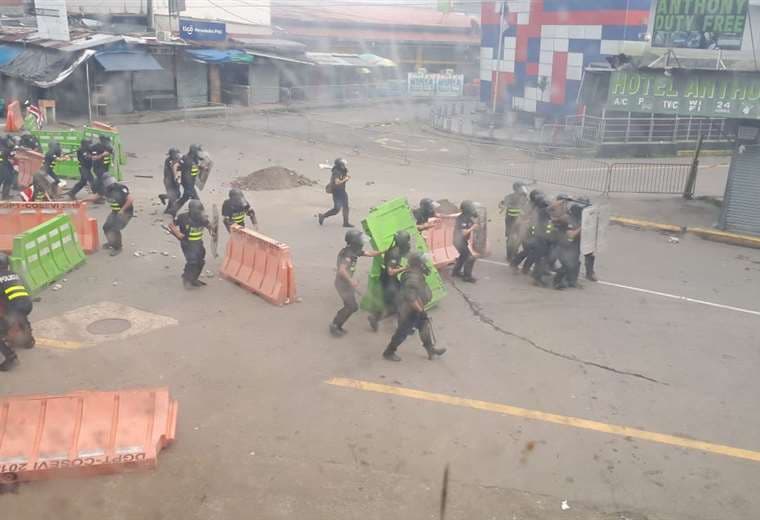 “Hemos tenido amenazas de bloqueos en la frontera sur desde el fin de semana. Hoy, en horas de la mañana, un grupo de manifestantes arremetió contra la policía con todo tipo de objetos como bombas molotov, pólvora y otros incendiarios, por lo que fue necesaria la intervención”, dijo Daniel Calderón, director de Fuerza Pública.