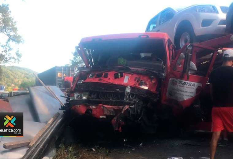 Un aparatoso choque entre dos camiones dejó como resultado tres personas heridas en Las Juntas de Abangares, Guanacaste.