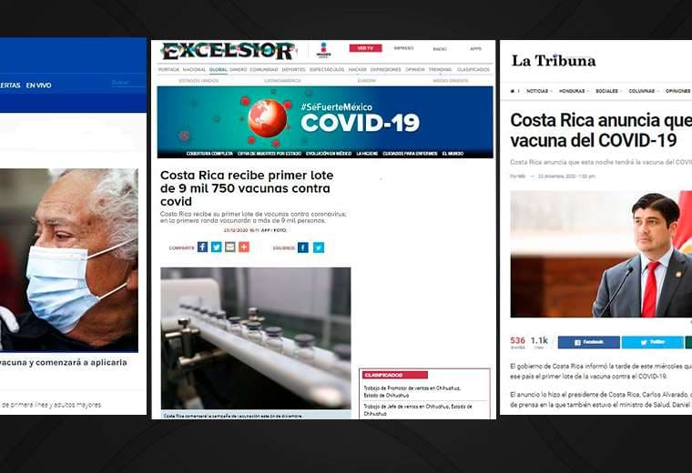 Medios de comunicación de México, Honduras, Panamá, Guatemala, Nicaragua, así como la Prensa Latina y Yahoo Noticias titularon el anuncio de las autoridades: antes de Navidad, los costarricenses tendrán las primeras 9.750 dosis, convirtiéndose así en los primeros de la región en aplicarlas.