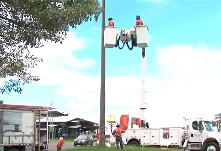 Personal de alumbrado público, ampliaciones y mantenimiento de la Compañía Nacional de Fuerza y Luz (CNFL) trabajó este domingo entre la línea del tren, en San Pedro de Montes de Oca, y la zona donde se realizarán las obras.