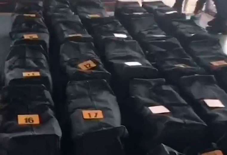 Tras la revisión, las autoridades encontraron 21 maletines de color negro con la droga.