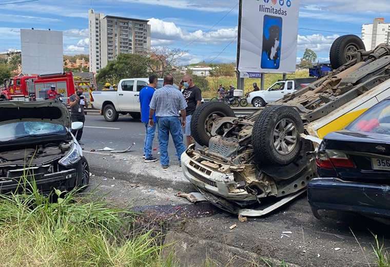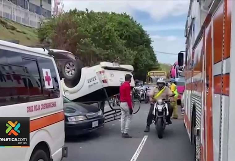 “En la colisión se ven involucrados tres vehículos y uno de ellos volcó. Atendimos a cuatro pacientes, pero uno de ellos estaba crítico, por lo que fue trasladado al Hospital México, los otros fueron llevados al San Juan de Dios en condición estable”, dijo Juan José Zúñiga, paramédico de Cruz Roja.