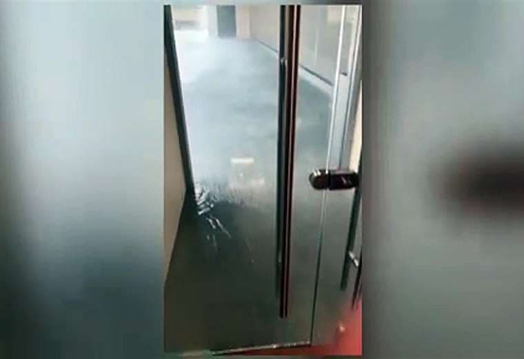 Imágenes muestran que el agua ingresó e inundó la entrada de los funcionarios, ubicada en el segundo piso (ver video adjunto).